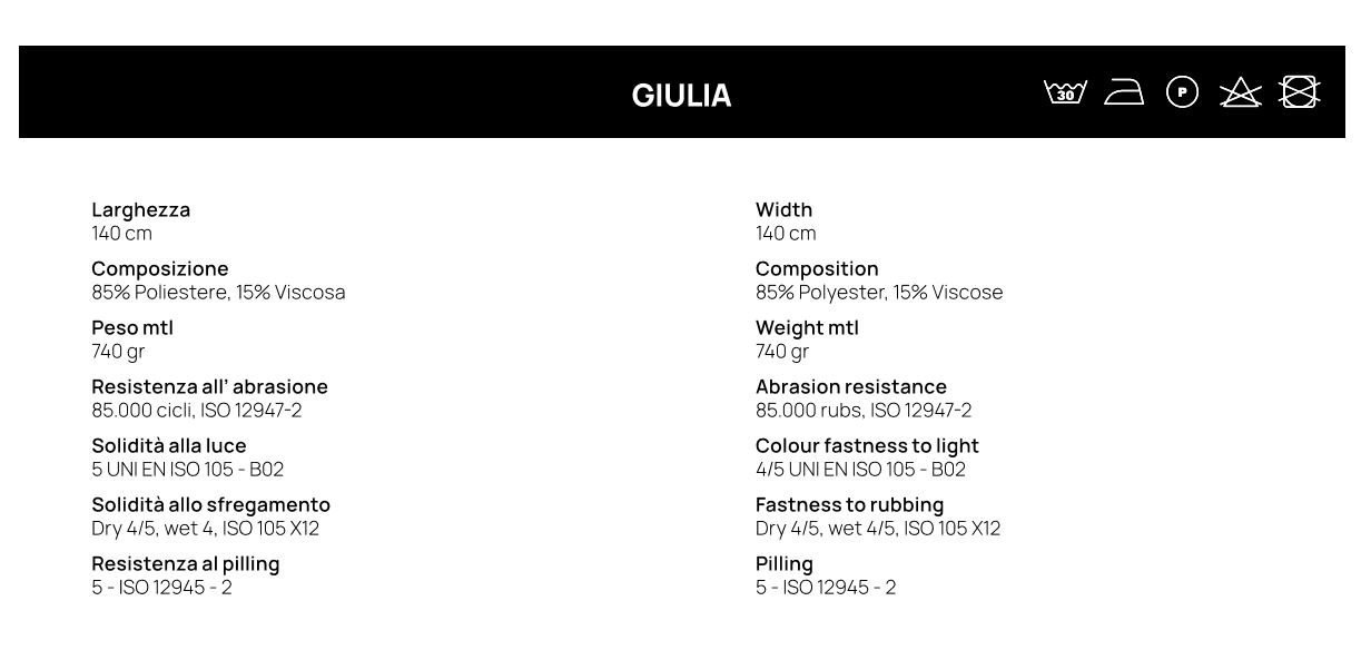 SEDUTA E SCHIENALE RIVESTITE IN: GIULIA, INFINITY, MAM, NOBILBOND, NOCERA, TRILOGY SUPERGA, BARBONCINO