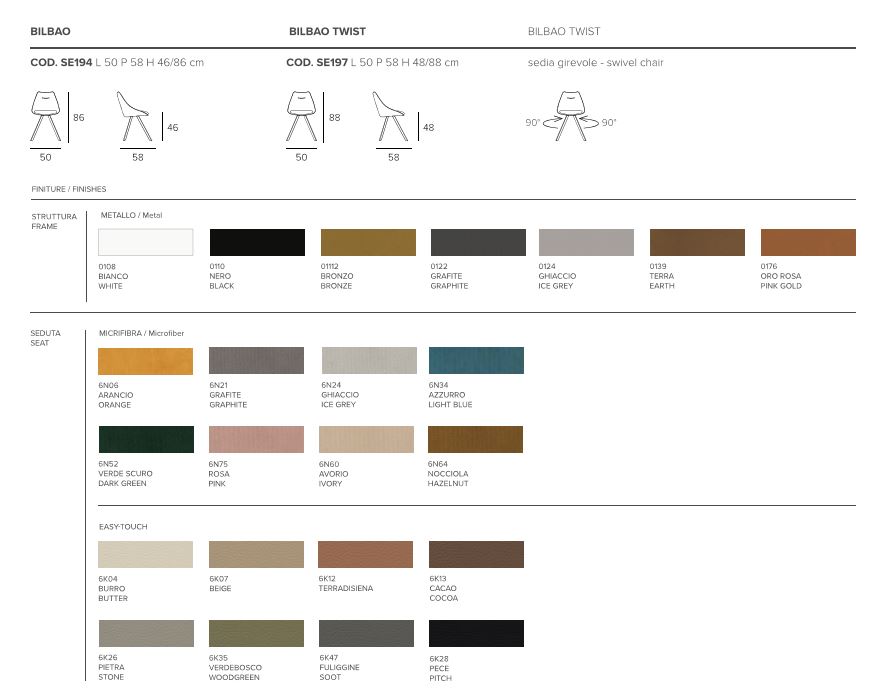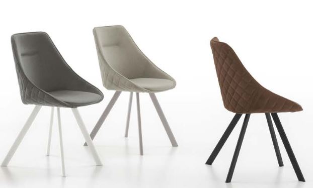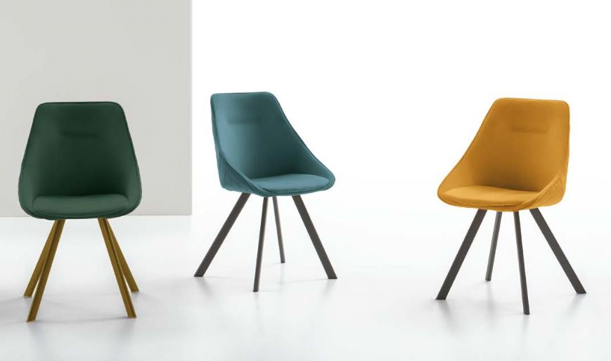 Sedia con struttura in metallo verniciato e seduta imbottita e rivestita in Easy-Touch oppure in morbida microfibra effetto velluto.