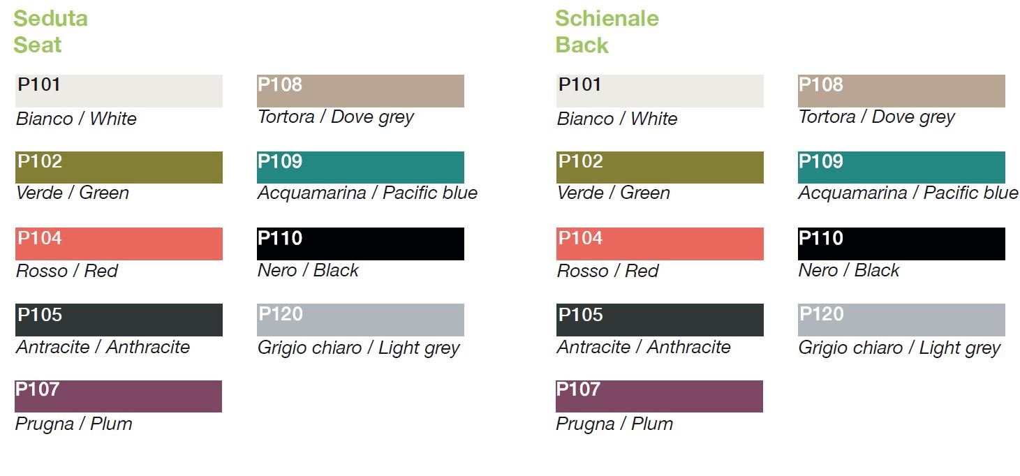 La poltroncina impilabile Strass P è un capolavoro colorato, robusto e leggero.