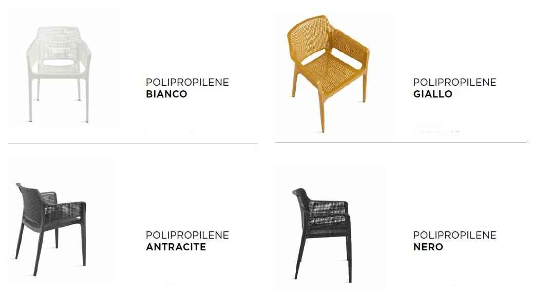 Sedia impilabile in polipropilene.Disponibile in diversi colori.L 59 P 56 H 80 HS 45 cm
