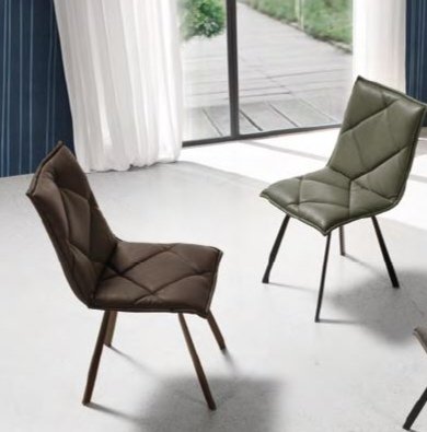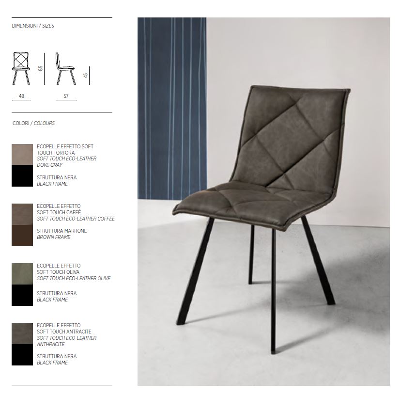 Sedia con struttura in metallo verniciato e seduta in ecopelle effetto soft touch.
