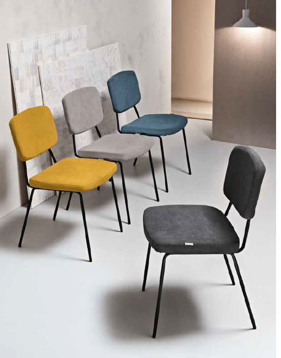 Sedia con struttura in metallo verniciato e seduta in tessuto imbottito.L 45 P 54 H 86 HS 48 cm