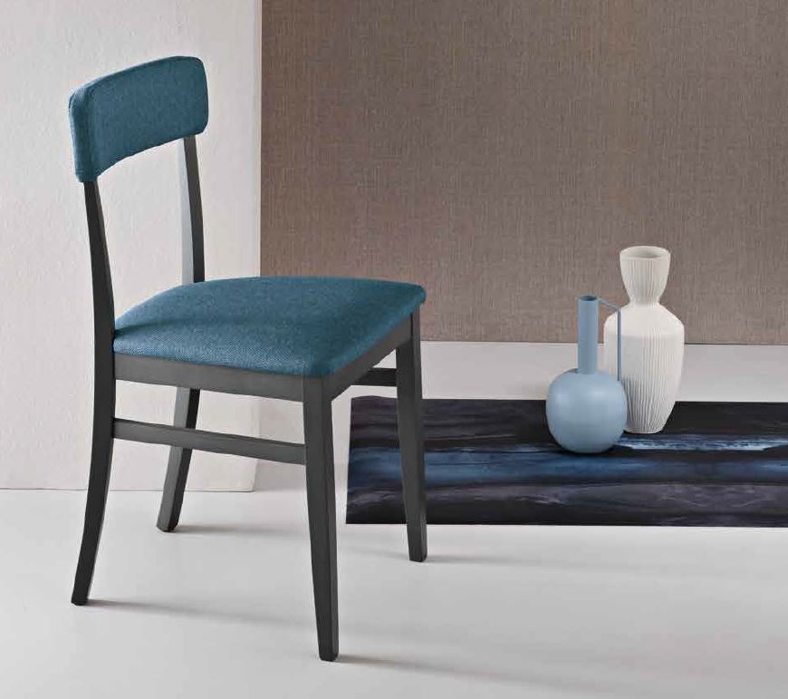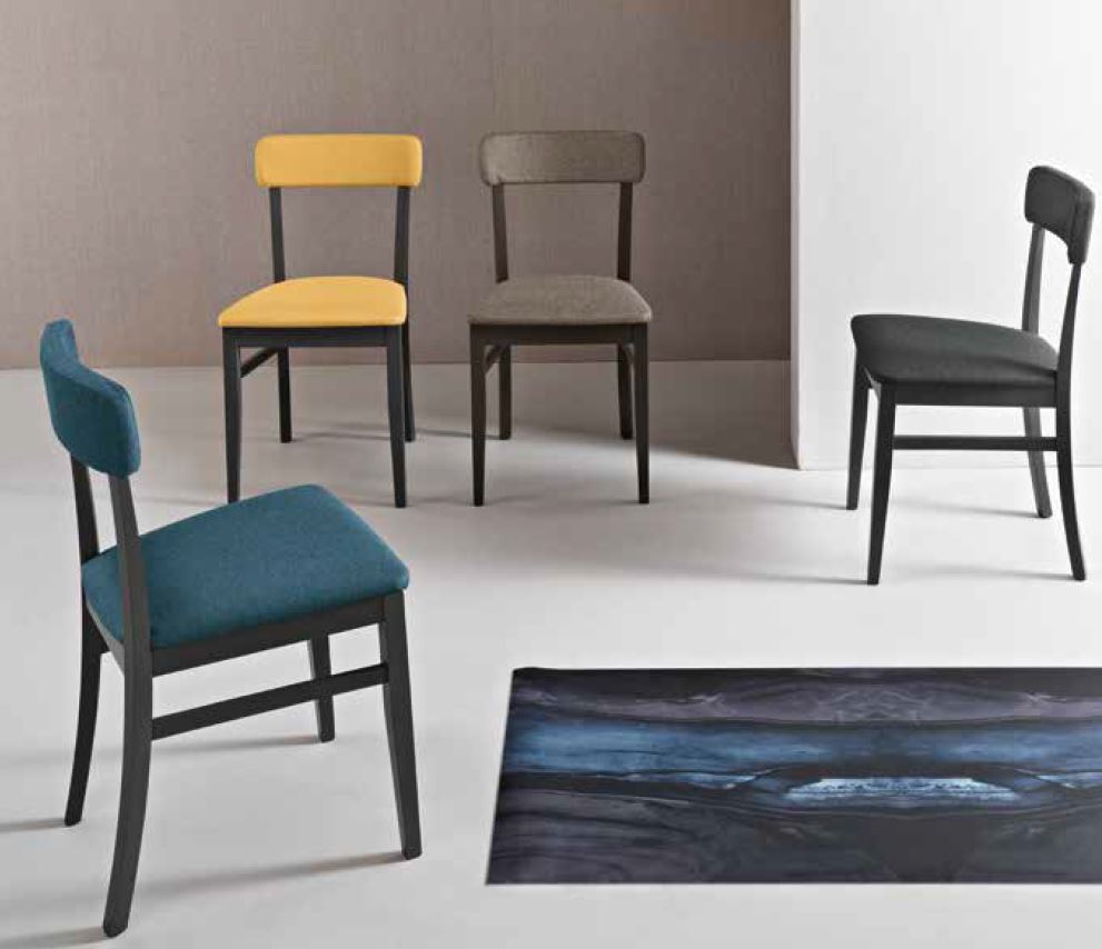 SEDIA IN LEGNO CON SCHIENALE E SEDUTA IMBOTTITA IN TESSUTO