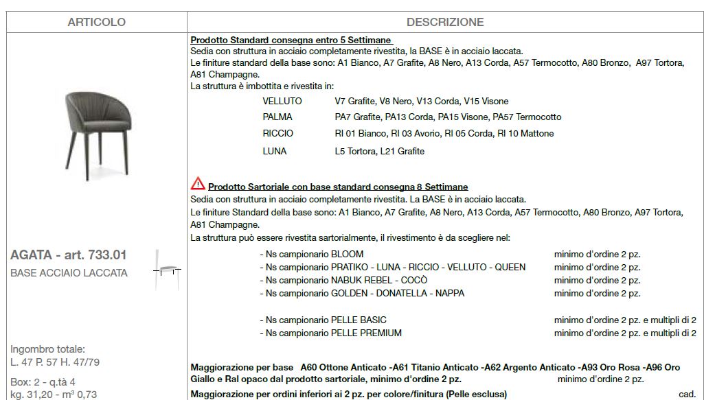 DISPONIBILE ANCHE IN NUMEROSE ALTRE FINITURE METALLO E RIVESTIMENTI CON MAGGIORAZIONE, VEDI SCHEDA NELLE IMMAGINI. PREZZO E FOTO ALTRI TESSUTI SU RICHIESTA