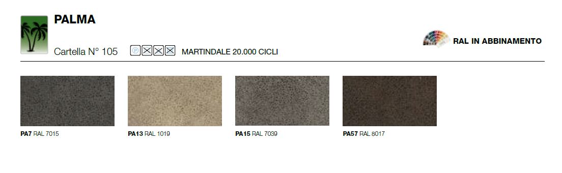 PALMA PA7 Grafite, PA13 Corda, PA15 Visone, PA57 Termocotto