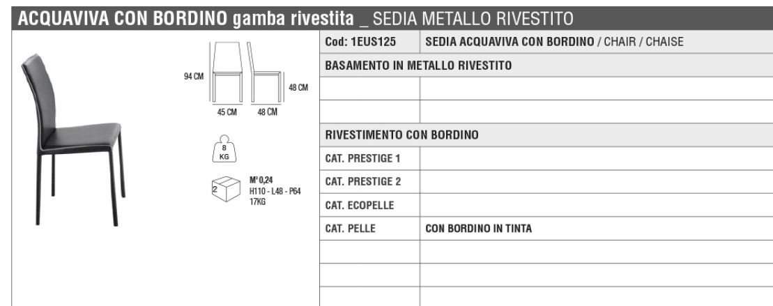 PREZZO QUI INDICATO CON PRESTIGE 1, PER ALTRI RIVESTIMENTI INVIARE RICHIESTA PREZZO