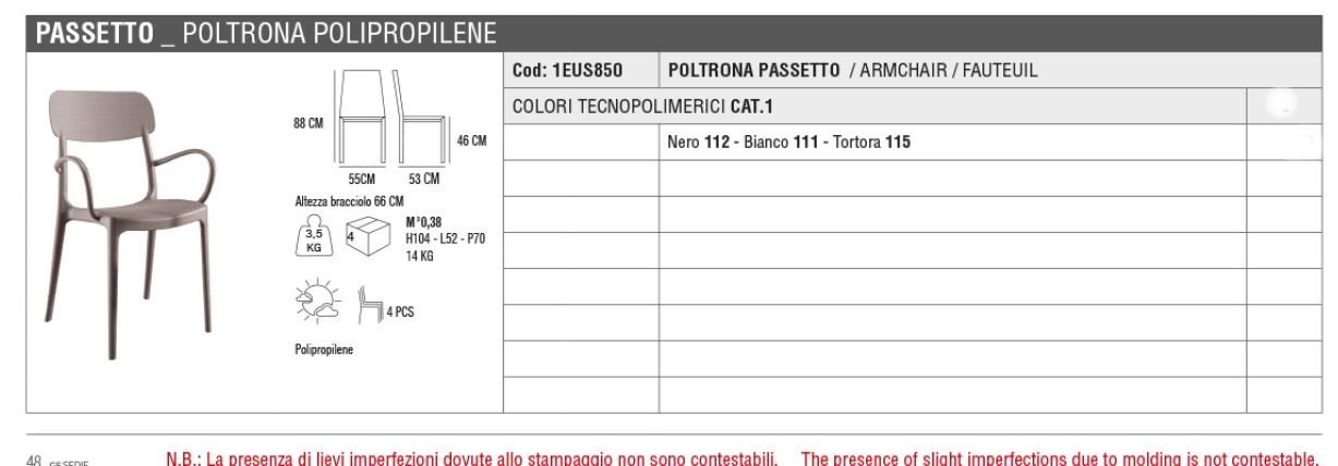 SET 4 SEDIE EUROSEDIA PASSETTO COLORI VARI