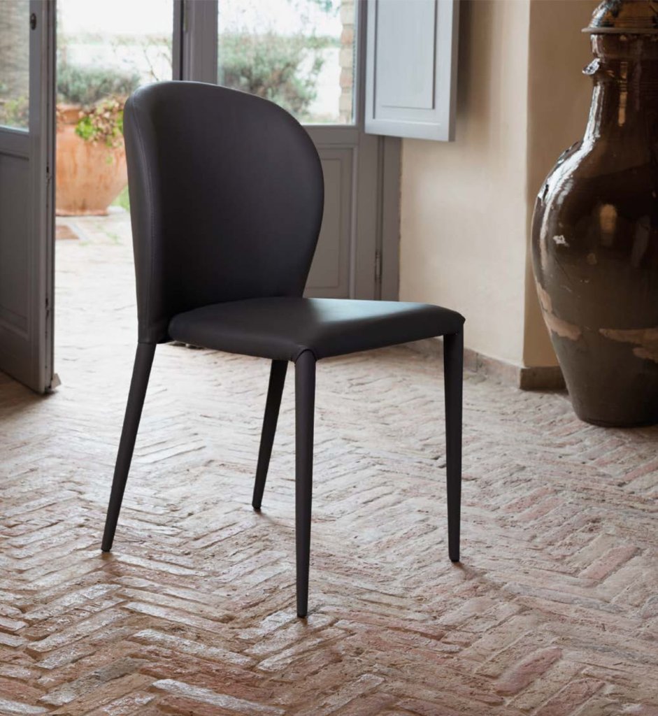 Sedia Brenda S102 con struttura in metallo interamente rivestita in similpelle in diverse varianti colore.