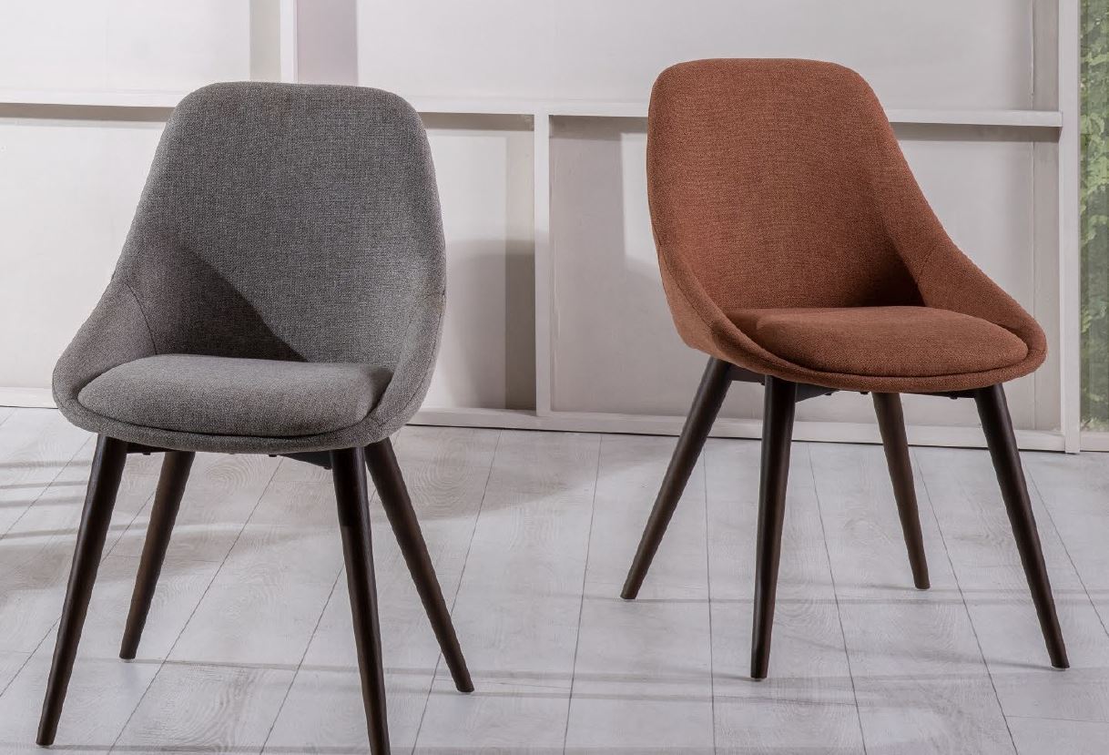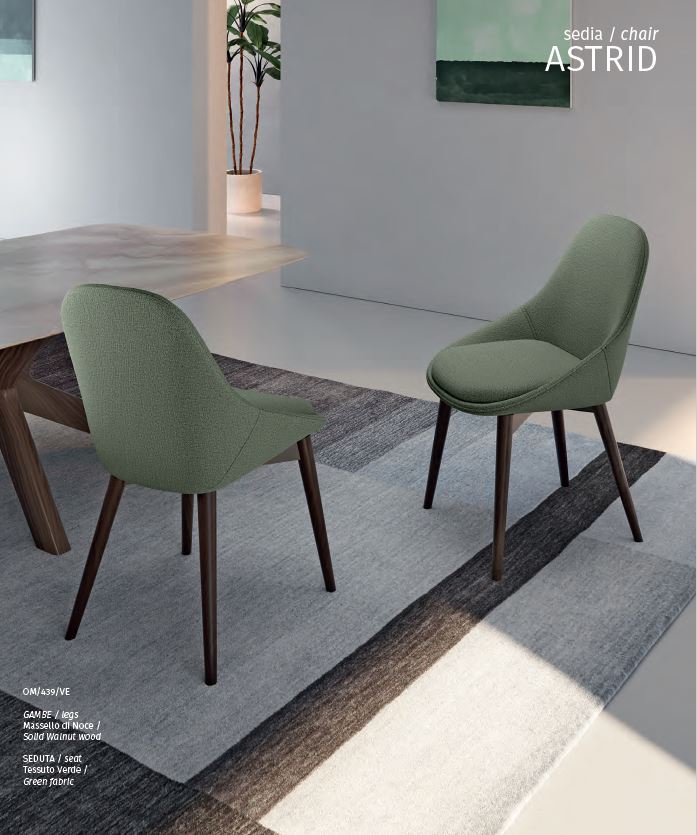 Chair with solid walnut wood strucutre covered in fabric. Walnut wood legs.