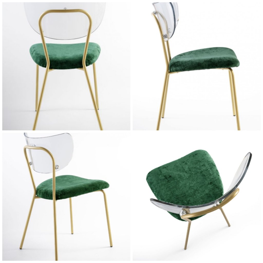 SET 4 SEDIE ORO-TRASPARENTE-VELLUTO VERDE
