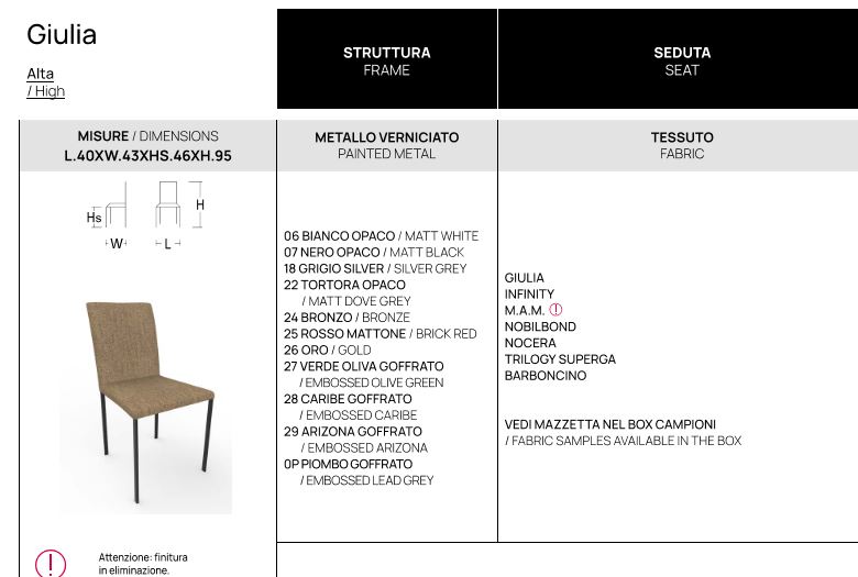 SET 4 SEDIE POINTHOUSE GIULIA 2 ALTEZZE FINITURE VARIE