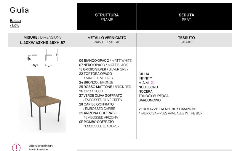 SET 4 SEDIE POINTHOUSE GIULIA 2 ALTEZZE FINITURE VARIE