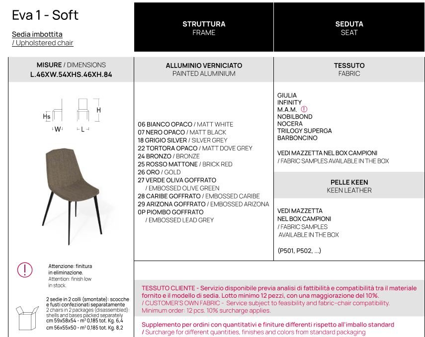 SEDUTA E SCHIENALE IN TESSUTO: GIULIA, INFINITY, MAM, NOBILBOND, NOCERA, TRILOGY SUPERGA, BARBONCINO