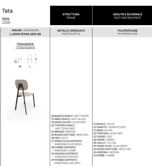 SEDUTA E SCHIENALE POLIPROPILENE COLORI: BIANCO, GRAFITE, NERO, TORTORA, ROSSO VERDE, GIALLO, VERDE OLIVA, ROSSO MATTONE, ARIZONA, CARIBE