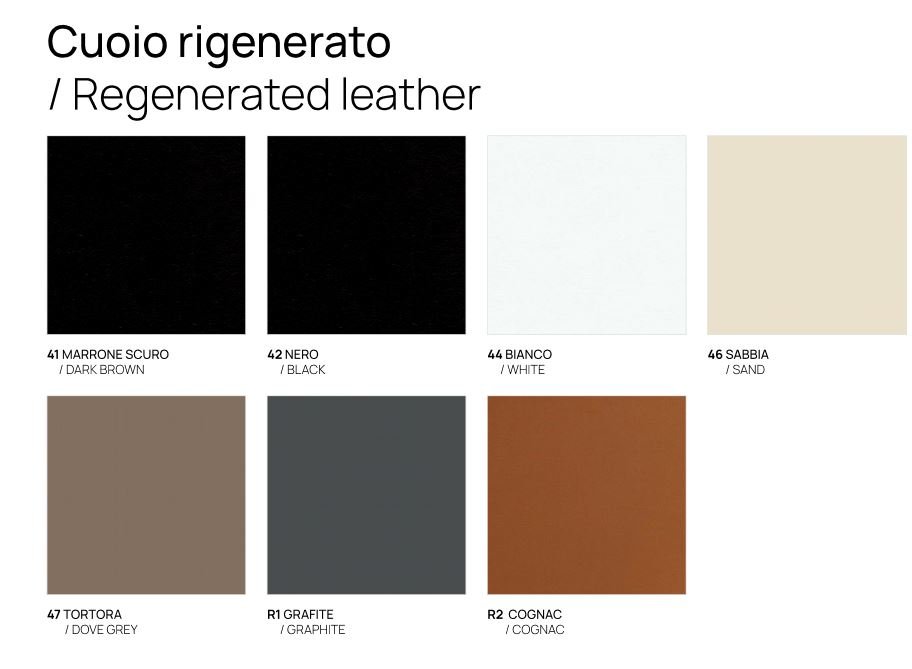 SEDUTA IN CUOIO RIGENERATO COLORI: TESTA DI MORO, NERO, BIANCO, SABBIA, TORTORA, GRAFITE, COGNAC