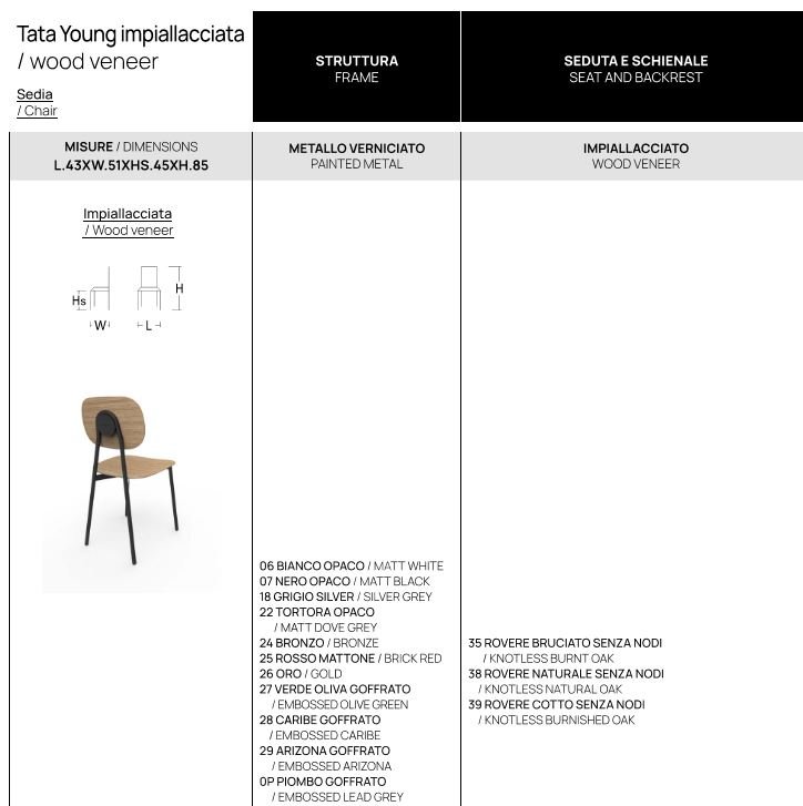 PREZZO VALIDO PER IDENTICI COLORI OGNI 2 SEDIE, OPPURE CON MAGGIORAZIONE SU RICHIESTA PER COLORI DIVERSI