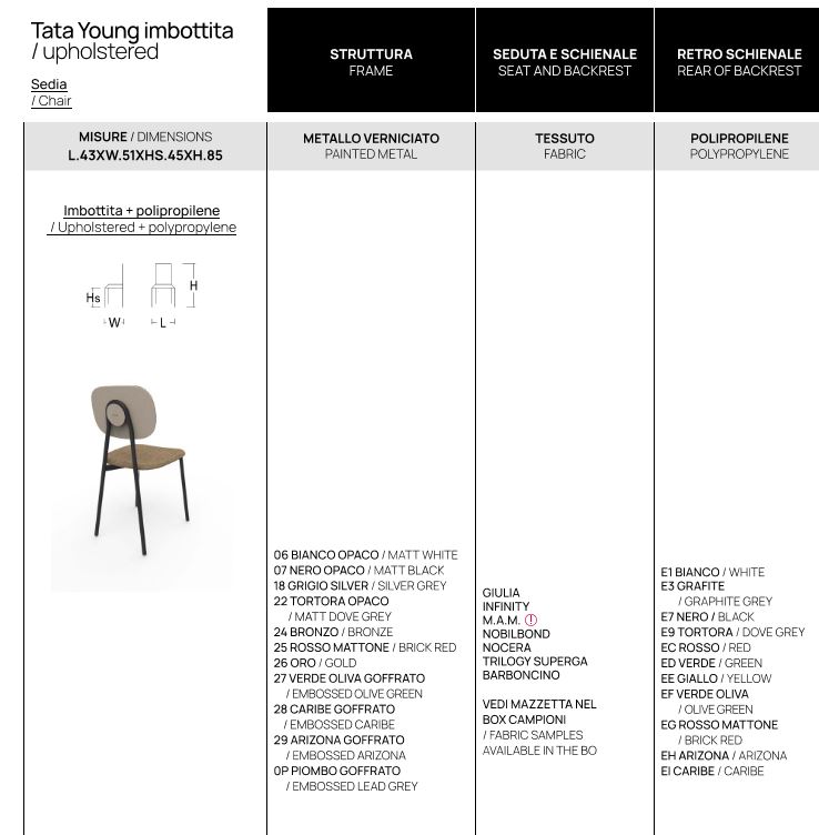SET 4 SEDIE POINTHOUSE TATA YOUNG 4 IMBOTTITA+POLIPROPILENE