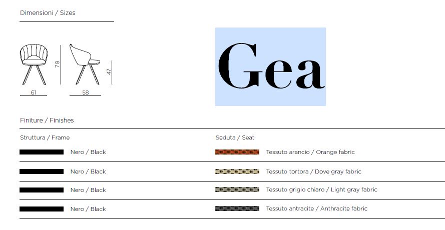 contemporaneo. Proposta in diverse varianti cromatiche, Gea si inserisce con naturalezza in ogni ambiente, coniugando