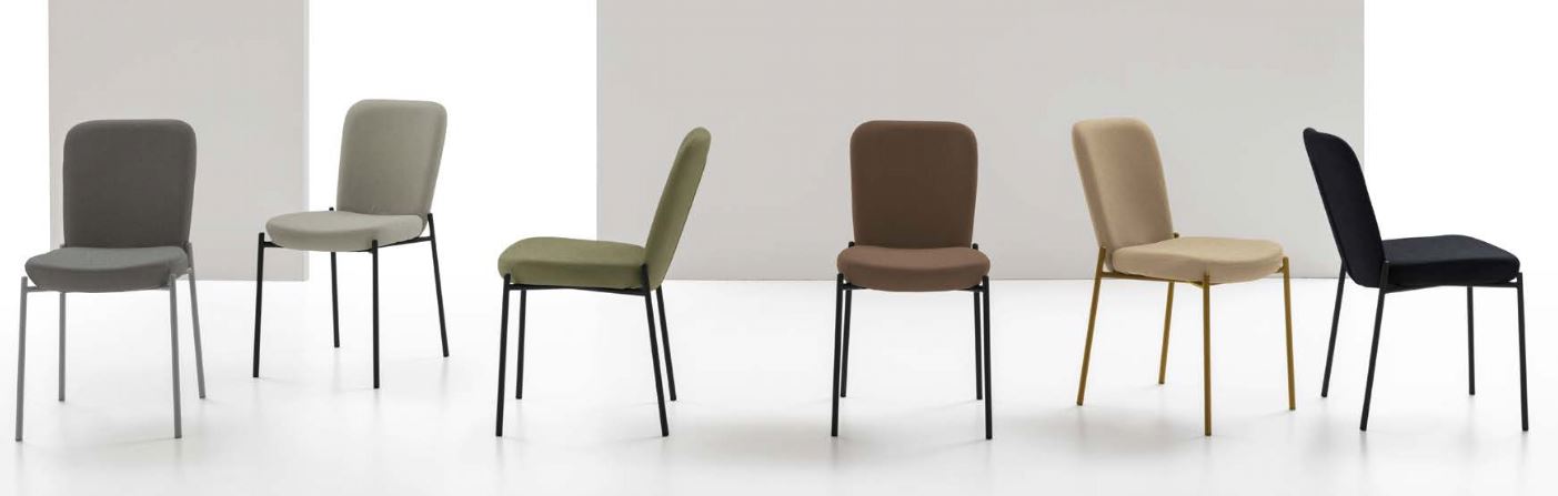Sedia con struttura in metallo verniciato e seduta e schienale imbottiti e rivestiti in morbido Easy-Touch.