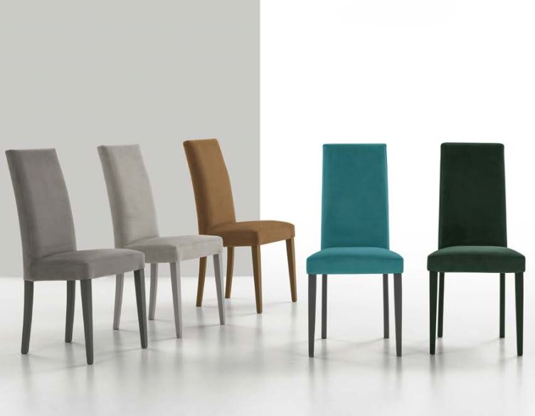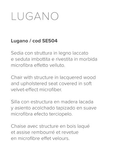 Sedia con struttura in legno laccato e seduta in morbida microfibra effetto velluto.
