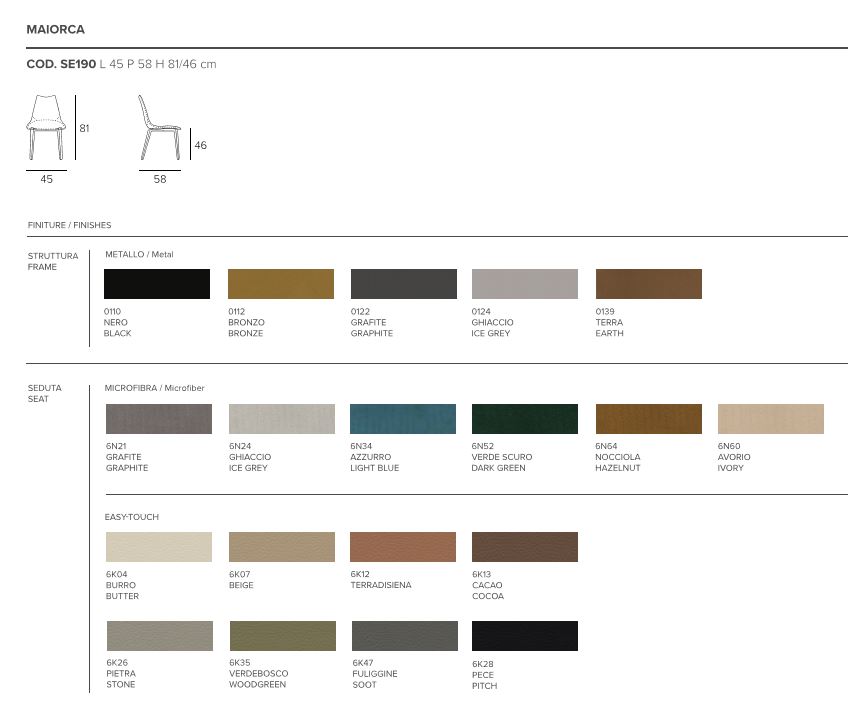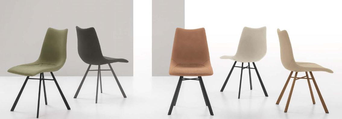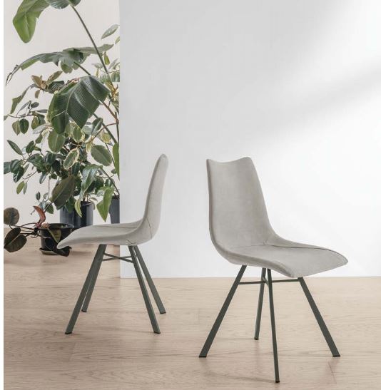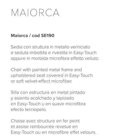 Sedia con struttura in metallo verniciato e seduta imbottita e rivestita in Easy-Touch oppure in morbida microfibra effetto velluto