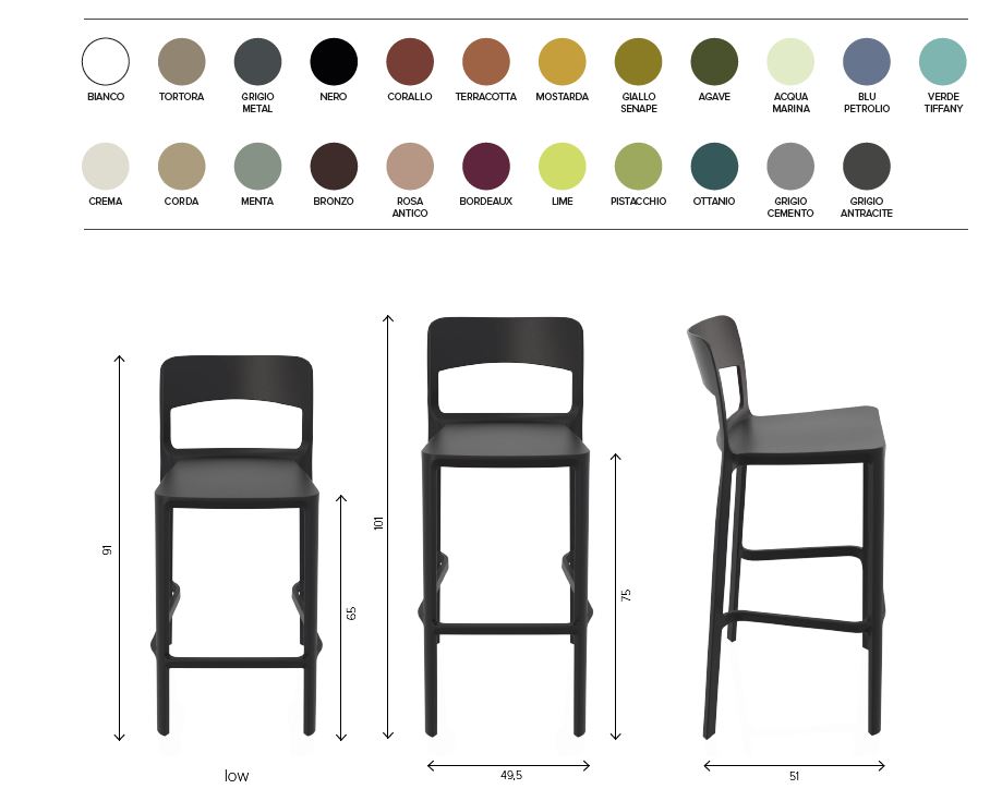 SET 4 SGABELLO INTERNO-ESTERNO MO-BASG, NUMEROSI COLORI