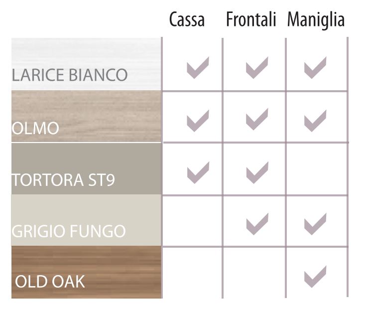 STRUTTURA COLORI: LARICE BIANCO, OLMO, TORTORA