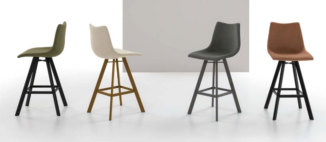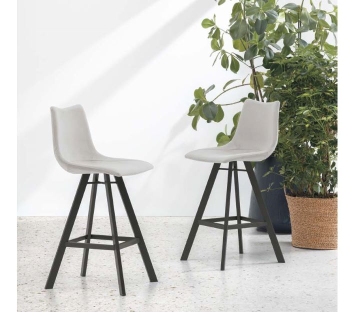 Sgabello fisso con struttura in metallo verniciato e seduta imbottita e rivestita in morbida microfibra effetto velluto oppure in Easy-Touch.