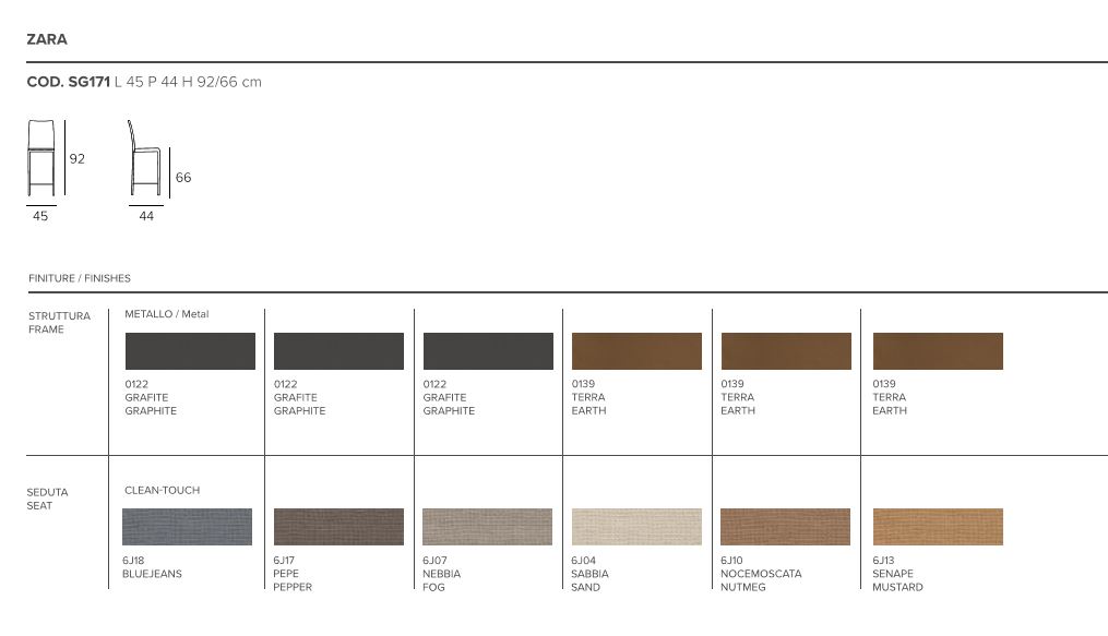 Sgabello fisso con struttura in metallo verniciato e seduta imbottita e rivestita in Clean-Touch.