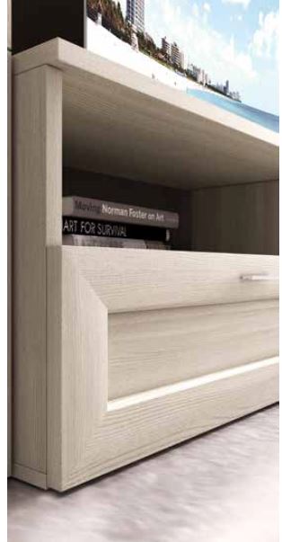 UNA PARTE COMPATTA CHE SI COMPONE DI TUTTI GLI ELEMENTI NECESSARI ALL'UTILIZZO DELL ZONA GIORNO: VETRINE CON E SENZA ILLUMINAZIONE, CASSETTI, ANTE, RIPIANI E VANO TV PERMETTONO DI ORGANIZZARE AL MEGLIO LO SPAZIO DELLA ZONA LIVING.