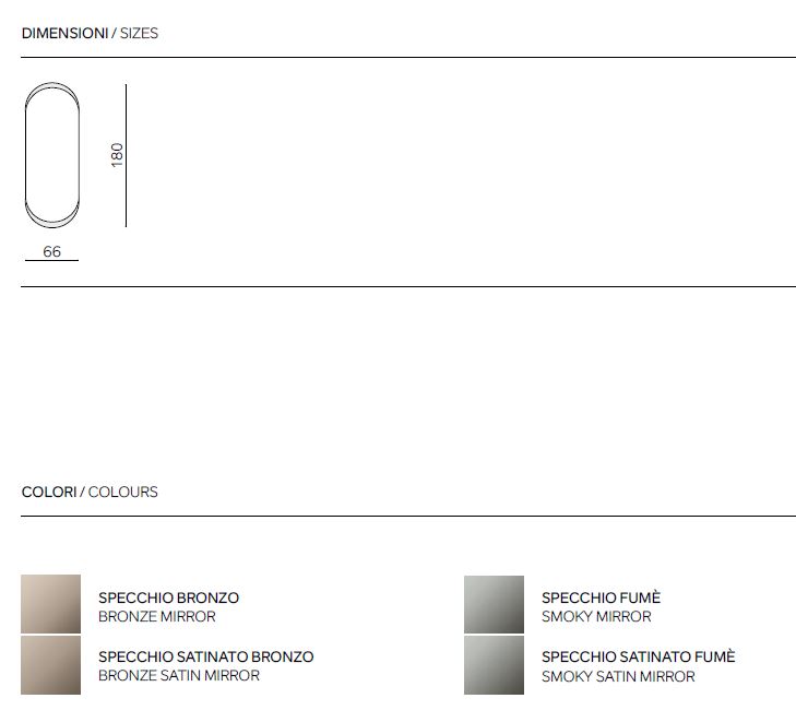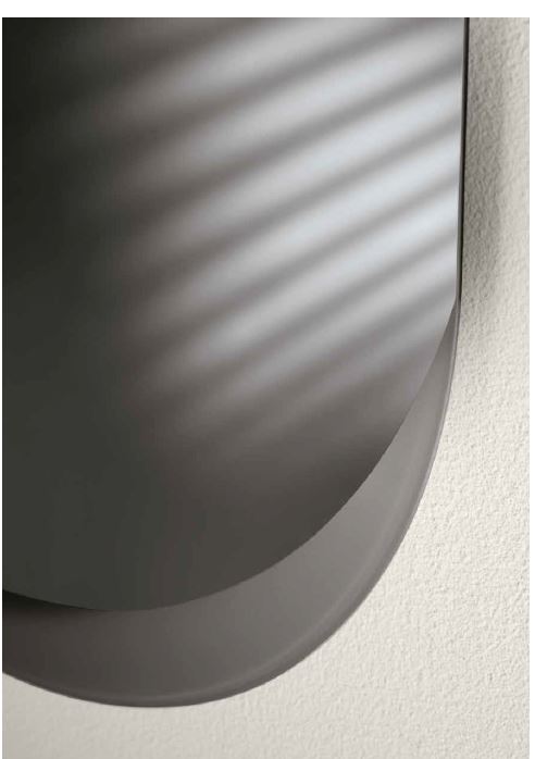 Specchio dalla forma allungata con le estremità arrotondate dall’effett satinato. Disponibile in un’unica