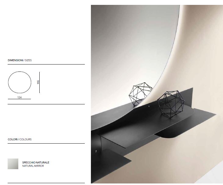 Specchio a filo lucido con telaio in ABS, retroilluminato con LED 3000K. Polished edge mirror with ABS frame, backlit with 3000K LED. L 56 H 44 cm L 60 H 110 cm