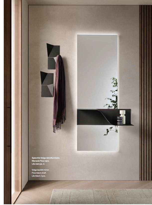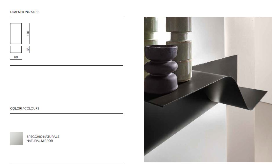 Specchio a filo lucido con telaio in ABS, retroilluminato con LED 3000K. Polished edge mirror with ABS frame, backlit with 3000K LED. L 60 H 38 cm L 60 H 110 cm