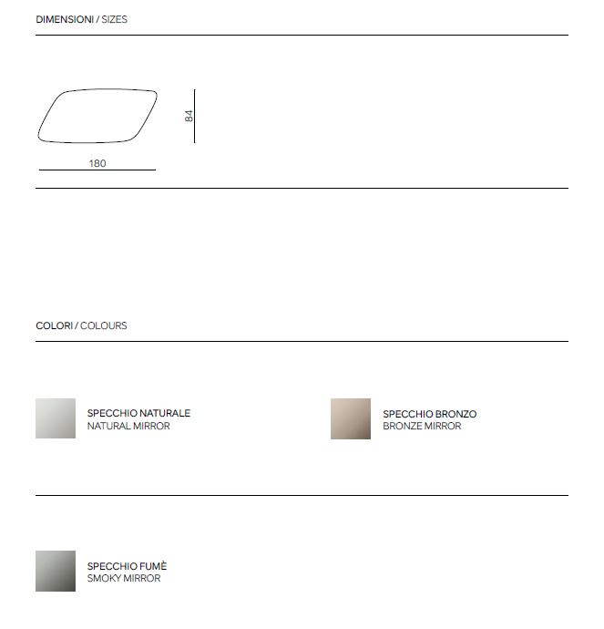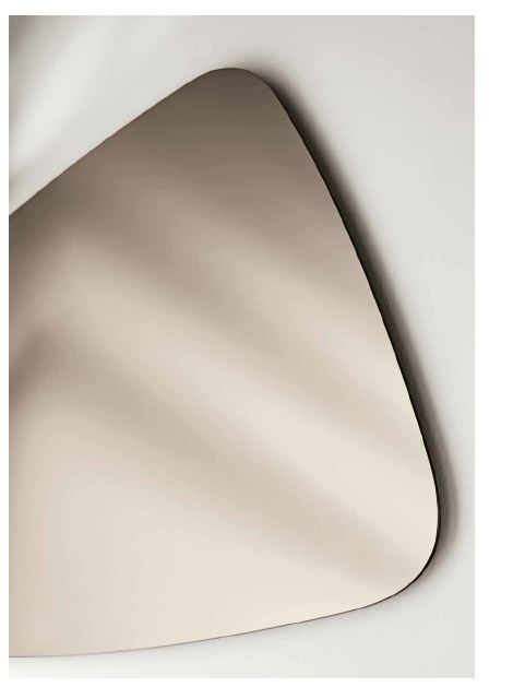 Specchio dal profilo lineare con lati che si incontrano a creare angoli arrotondati. Disponibile in tre varianti colore ed un unica dimensione.