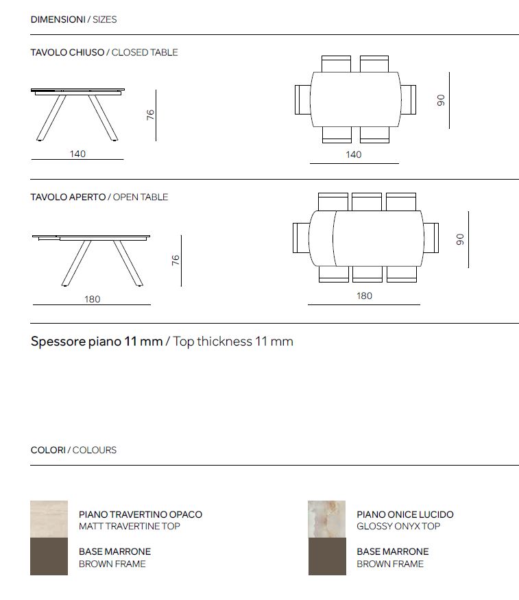 Chiuso / Closed L 140 P 90 H 76 cm