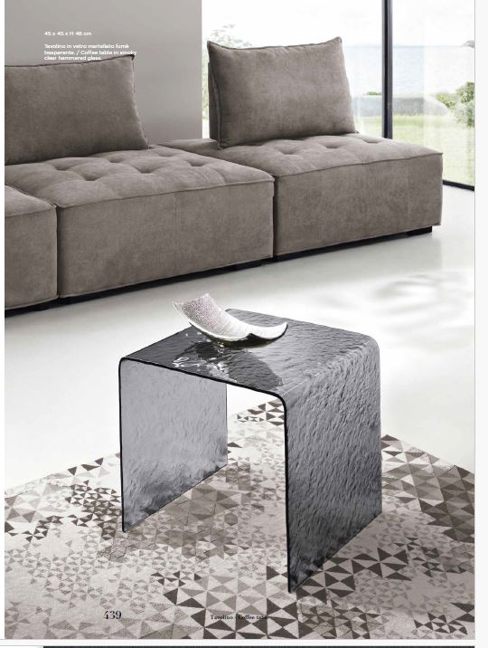 TAVOLINO IN VETRO TRASPARENTE CURVATO EFFETTO MARTELLATO