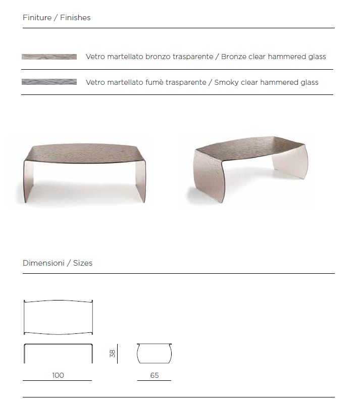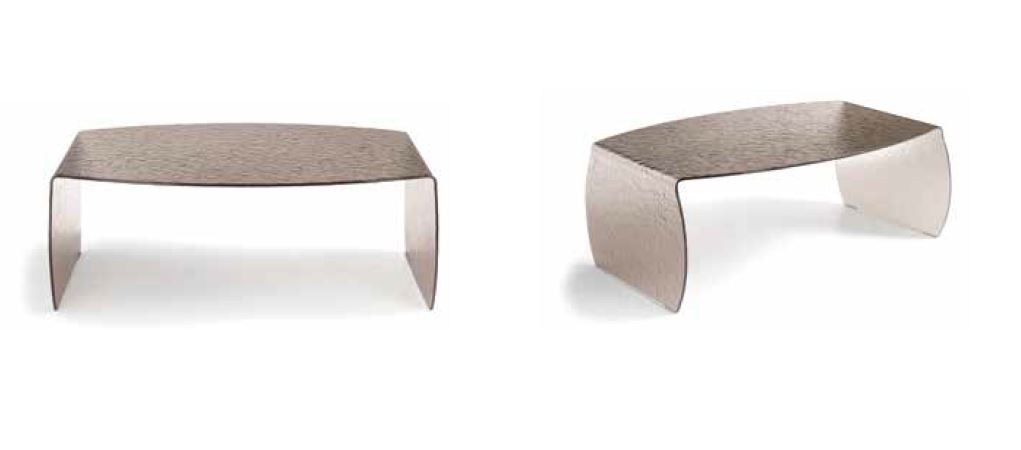 TAVOLINO IN VETRO TRASPARENTE CURVATO EFFETTO MARTELLATO