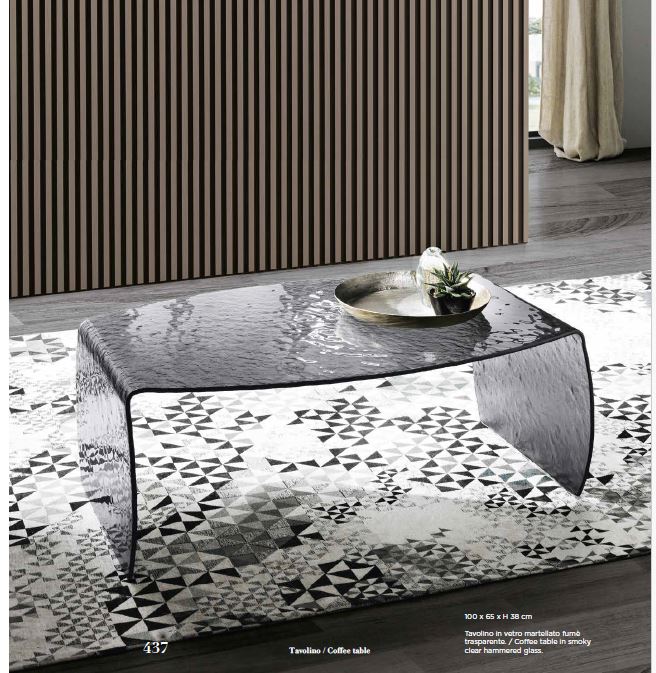 TAVOLINO IN VETRO TRASPARENTE CURVATO EFFETTO MARTELLATO