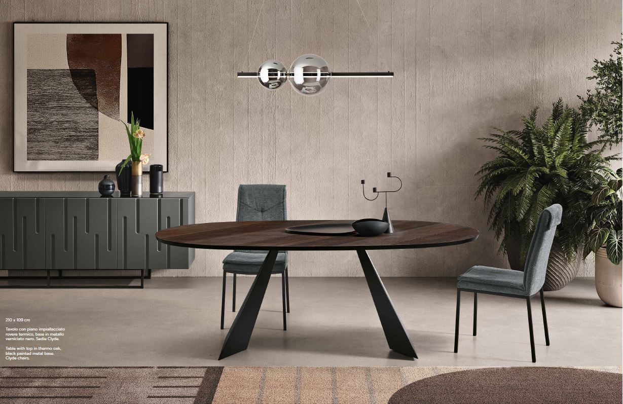 Tokyo reinterpreta il design pulito del modello Gilmour con un tocco di raffinatezza in più: un elegante piano ovale in rovere impiallacciato, perfetto per chi ama linee morbide e una convivialità senza spigoli. La forma ellittica non solo dona leggerezza visiva, ma facilita la