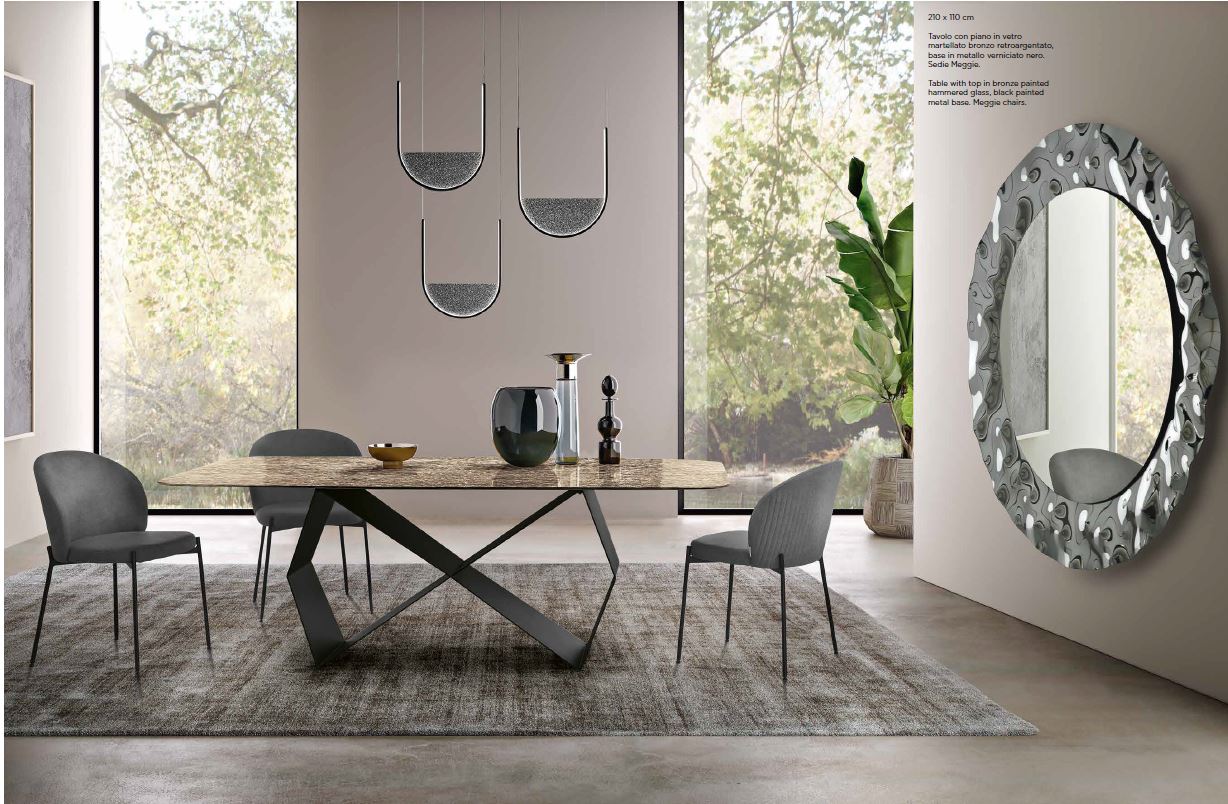 TAVOLO 110X210 CAPODARTE KARL BRONZO-VETRO RIGATO BRONZO RETROARGENTATO