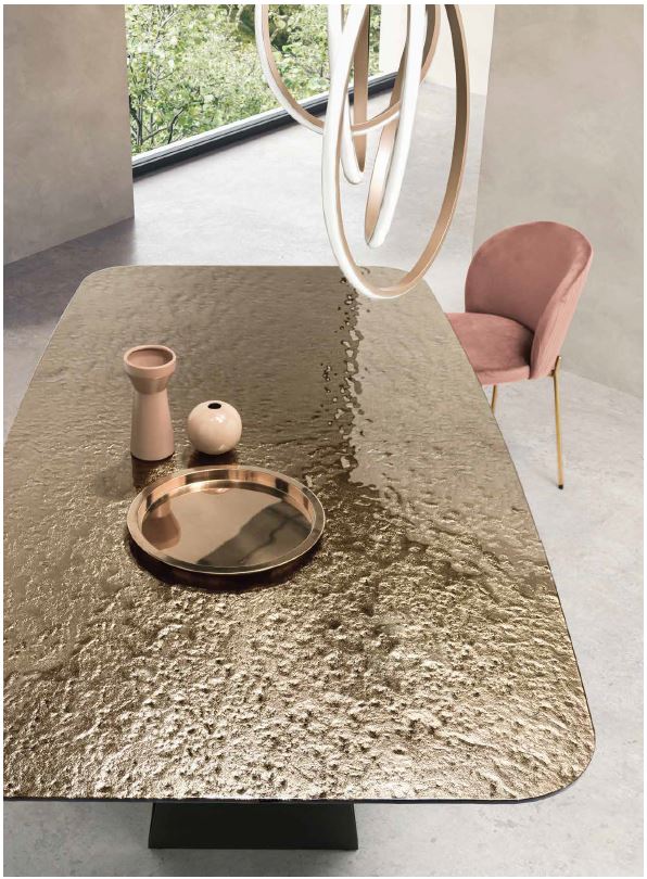 TAVOLO 110X210 CAPODARTE KARL VETRO MARMELLATO BRONZO RETROARGENTATO