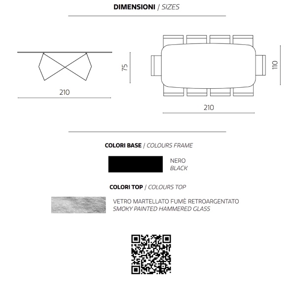 DIMENSIONI / SIZE 210 x 110 x H 75 cm