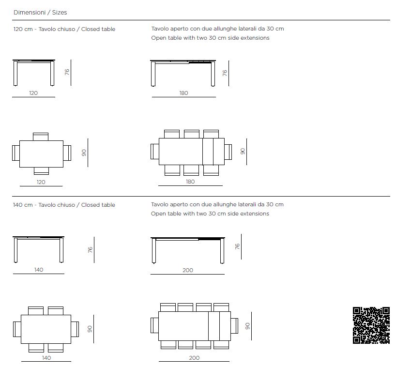 due allunghe da 30 cm, pronte ad ampliare la superficie quando serve. Proposto in due misure, Frost unisce funzionalità e