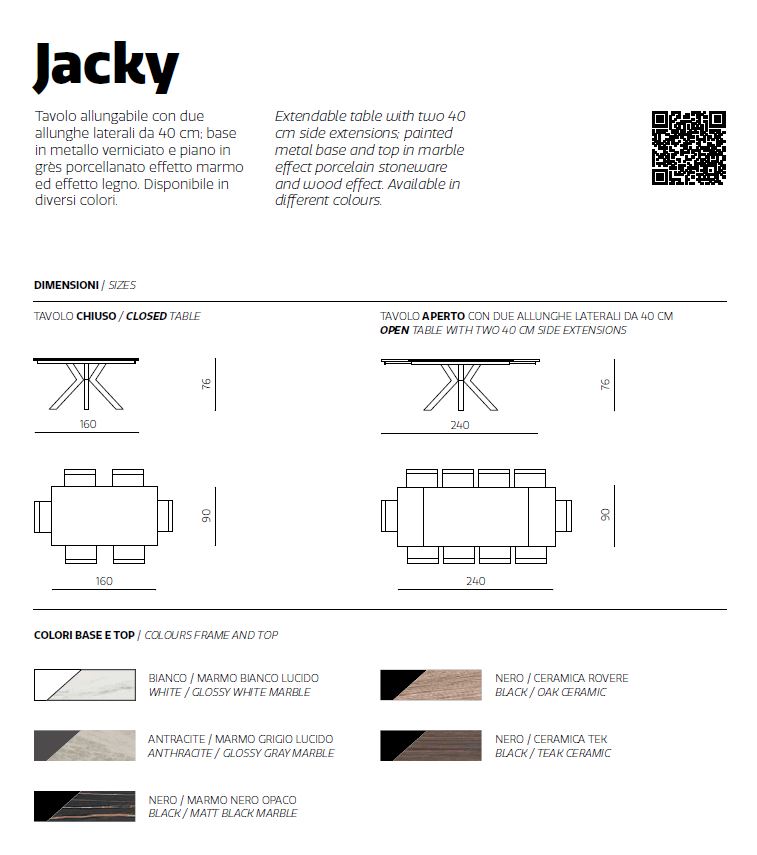 TAVOLO 90X160 ALLUNG.240 CAPODARTE JACKY CERAMICA ROVERE