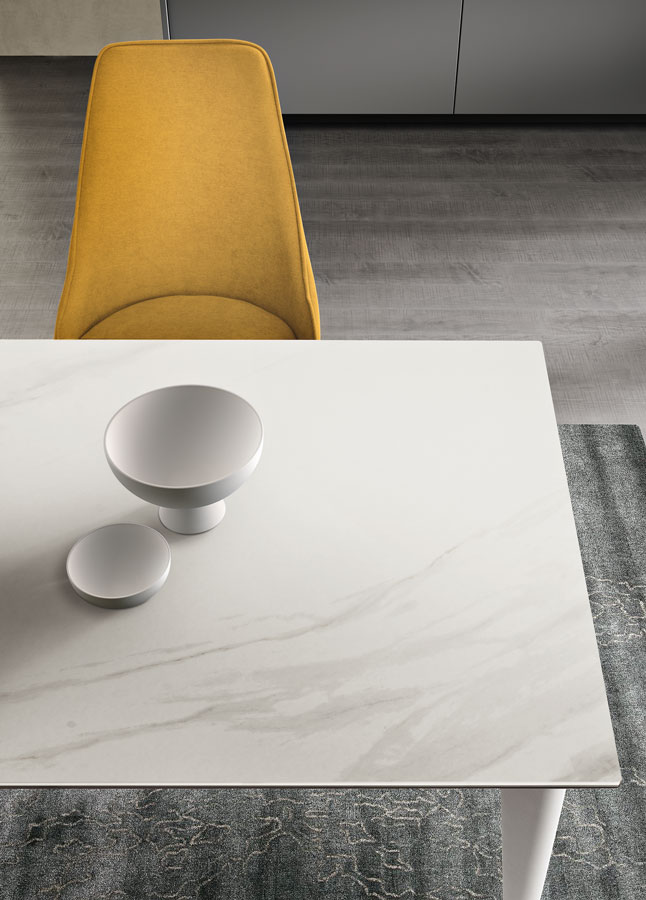 Tavolo allungabile telescopico con base in metallo verniciato e top in grès porcellanato