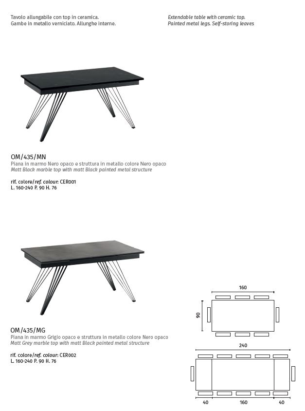 TAVOLO 90X160 ALLUNG.240 STONES MATCH 1 MARMO NERO OM435MN