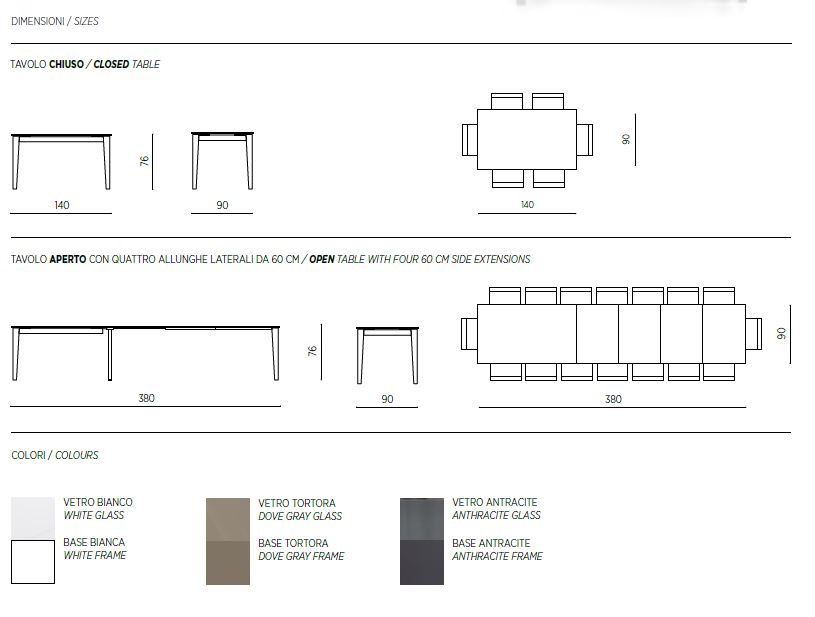 TAVOLO 90X160 ALLUNG.260 CAPODARTE OMERO VETRO ANTRACITE