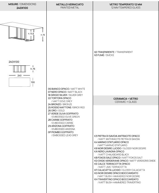TAVOLO METRA POINTHOUSE FINITURE E MISURE VARIE