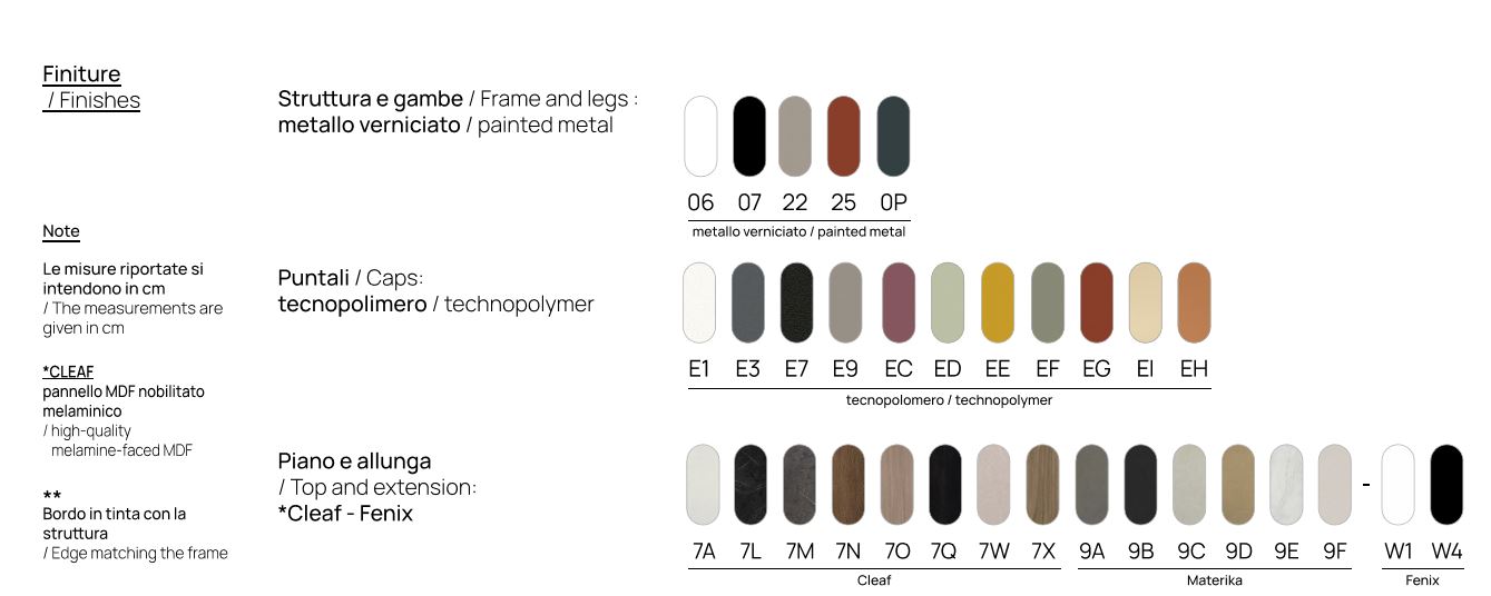 PIANO CLEAF FINITURE: BIANCO 7A, MARMO NERO 7L, MARMO GRIGIO 7M, LECCIO 7N, ROVERE NATURALE 7O, LEGNO