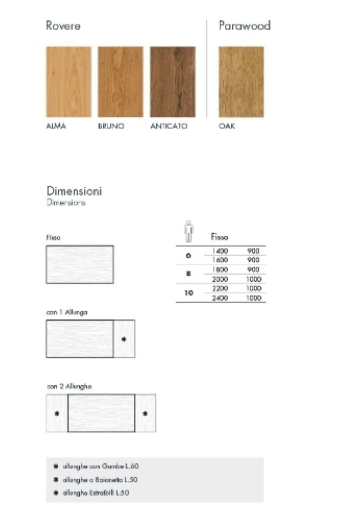 La finitura della prolunga è diversa per colore